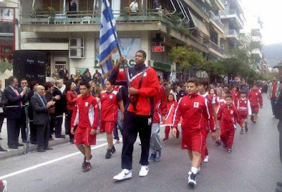 Γιάννης Αντετοκούνμπο σε παλαιότερη παρέλαση με την Ελληνική σημαία στα